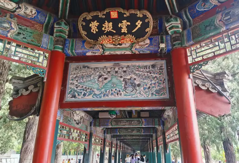 The promenade is located at the southern foot of Wanshou Mountain, facing Kunming Lake and adjacent to Wanshou Mountain in the north. It starts from Yaoyue Gate in the east and ends at Shizhang Pavilion in the west. It is 728 meters long and has a total of 273 rooms. It is the longest corridor in Chinese gardens. In 1992, it was recognized as the longest corridor in the world and included in the "Guinness World Records". Each beam in the corridor is painted, with more than 14,000 paintings in total, including landscapes, flowers, birds, fish and insects, character allusions, etc. The characters in the paintings are all based on Chinese classics.