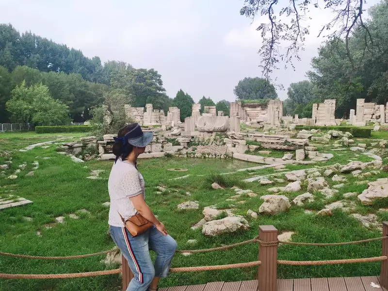 After riding from the Summer Palace to the Old Summer Palace, it was almost dusk and the Old Summer Palace was still crowded. Wandering in the once prosperous garden that is now deserted and full of smoke and grass, I couldn't help but sigh: The Old Summer Palace should be an eternal pain in the hearts of the Chinese people.