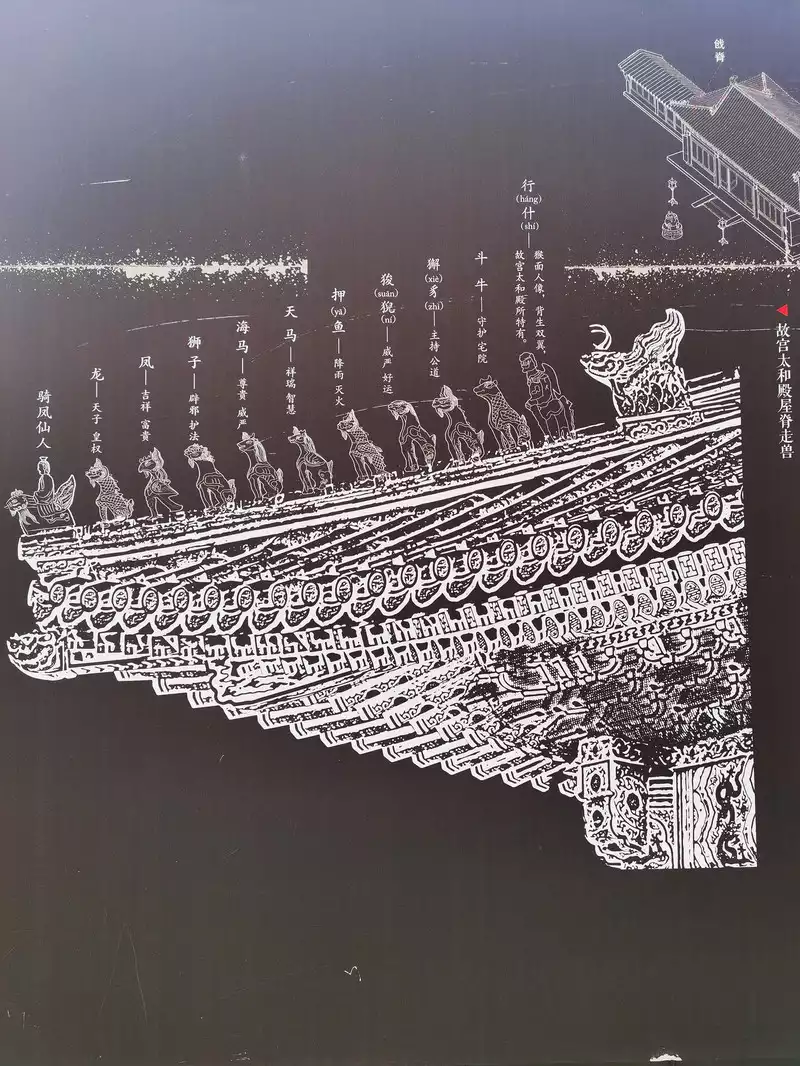 Because the construction of the Hall of Supreme Harmony exceeded the specifications of the Ninth Five-Year Plan, the number of ridge beasts on the roof also increased, making it the only isolated example in ancient Chinese architecture. The number of horned ridge beasts represents the level of the building. The highest-level building is decorated with nine ridge beasts, while the Hall of Supreme Harmony is decorated with ten, with one more Xingshi. This is a special case, the only special case. This is unique in the history of Chinese palace architecture. Only the Jinluan Hall (Taihe Hall) can complete all ten of them, showing its supreme importance. p > < p > The last mythical beast is Xingshi. Although it is human, it has the face of a monkey, with two terrifying fangs exposed outwards, and a pair of wings on its back. The shape is very strange. There are also different opinions among the people about the prototype of this mythical beast. Some people think that Xingshi is very similar to Lei Zhenzi and is one of the gods in charge of the Ministry of Thunder. Building such a prototype on the roof will help protect ancient buildings from lightning; others say that Xingshi is the six-eared macaque mentioned in Buddhism. It is good at ascertaining the truth and everything is clear, which is in line with the political function of the Hall of Supreme Harmony.