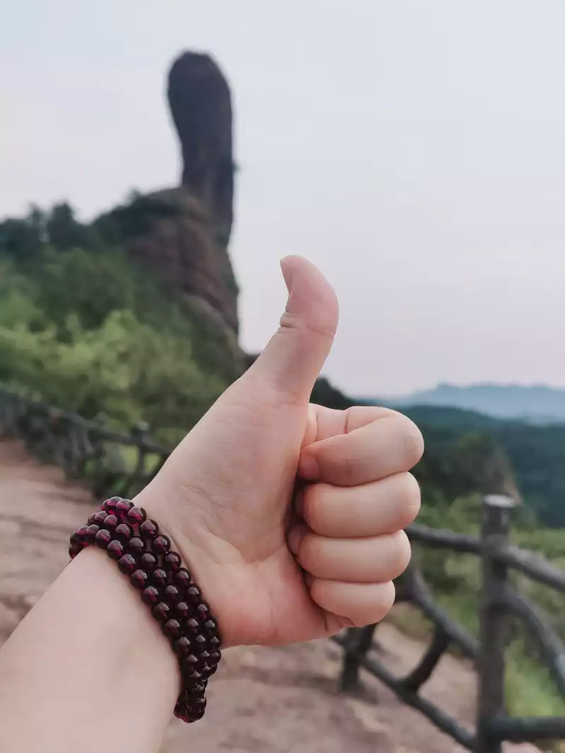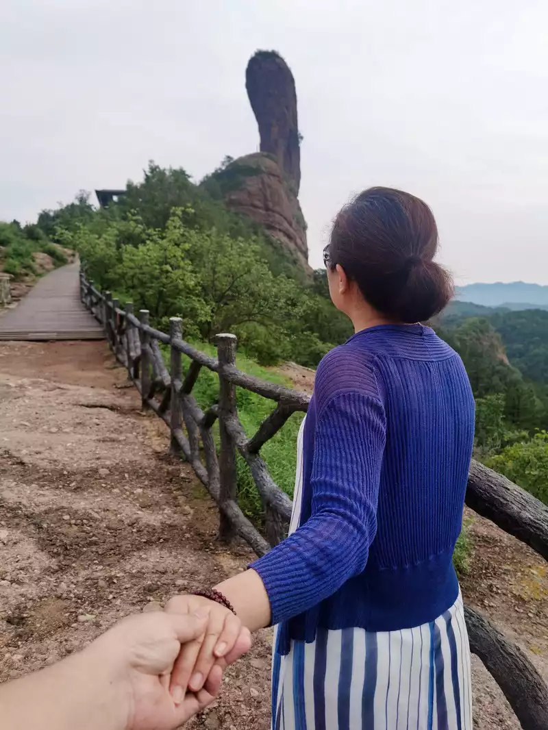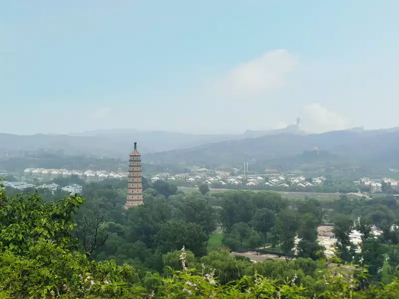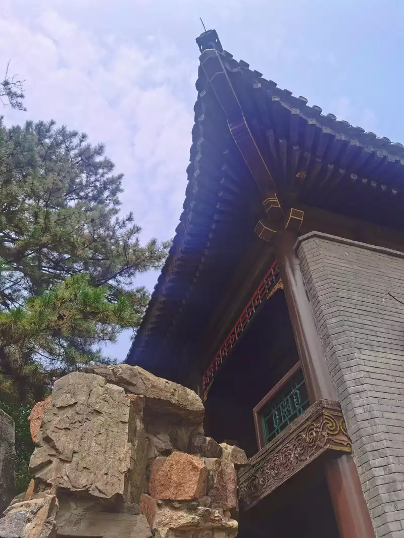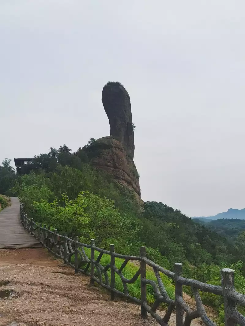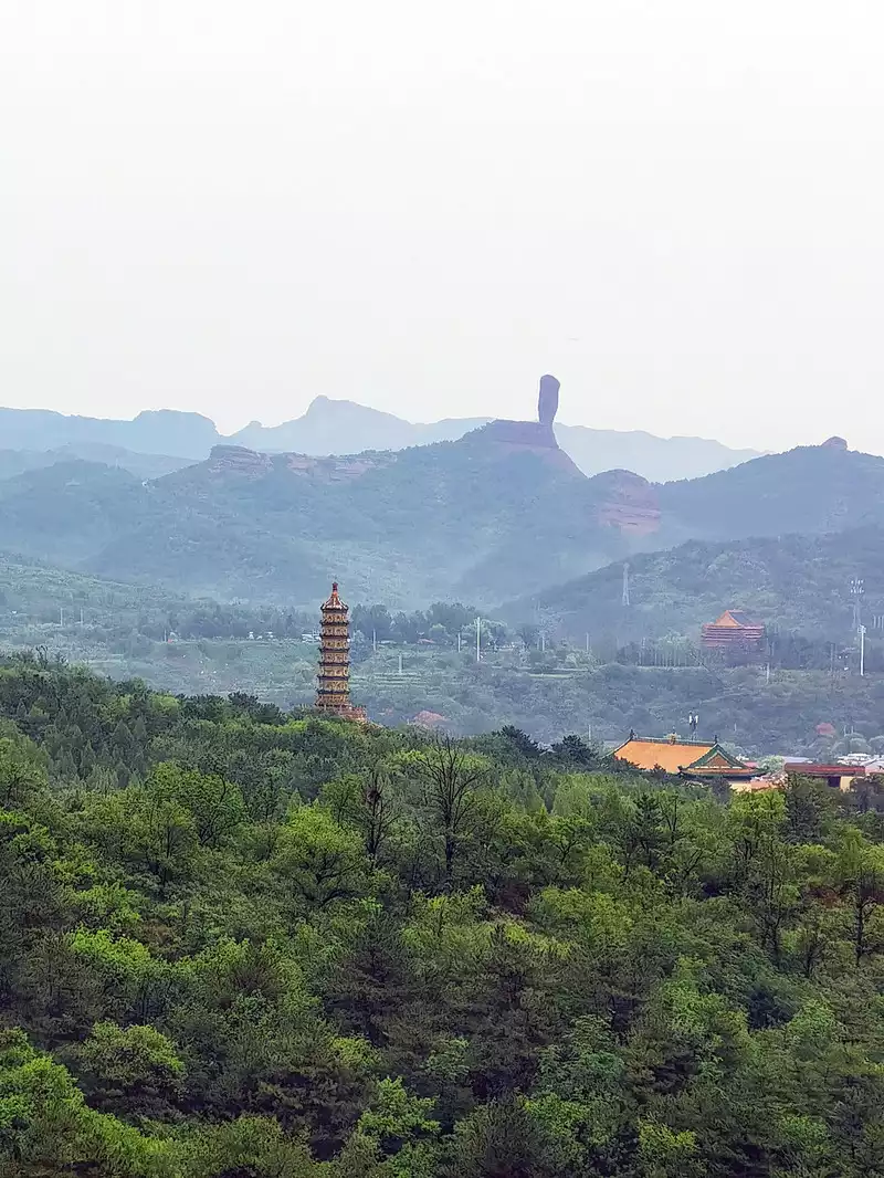 I had already seen Qingchui Peak from afar yesterday while climbing the Mountain Resort. Today, I saw it again from the rooftop of the Wanfa Guiyi Hall complex. It's hard not to notice this iconic giant hammer.