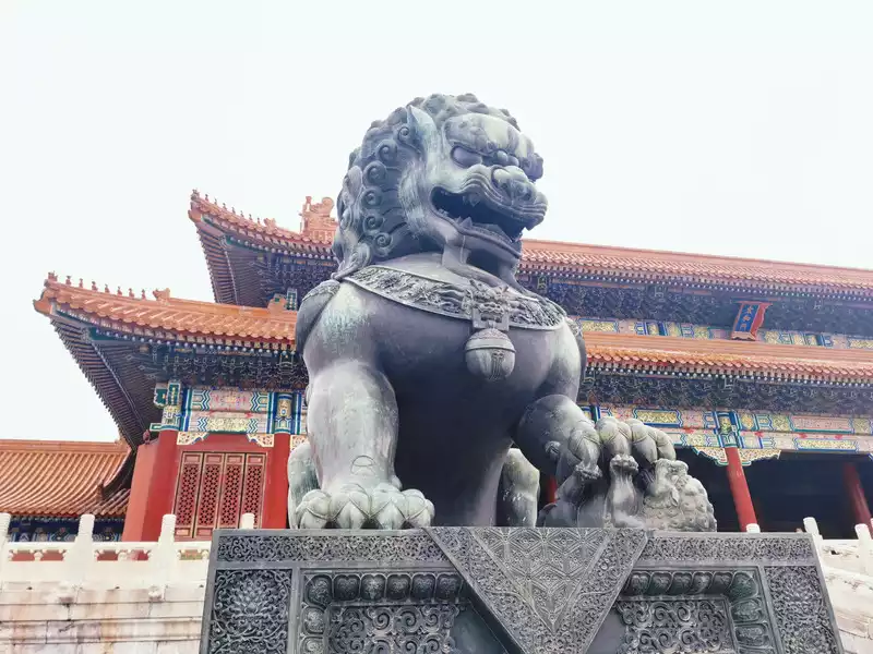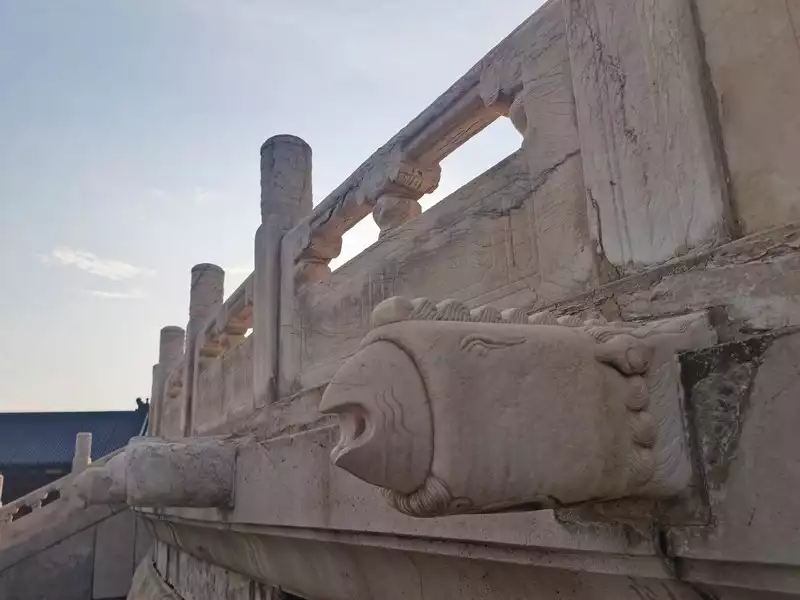 Chi kiss (pronounced chī wěn, also known as "chi kiss"), is a kind of decoration at both ends of the main ridge of the roof of ancient Chinese buildings. Legend has it that Chiki is the ninth son of the dragon. This dragon son is good at looking around in dangerous places and also likes to swallow fire. It is said that it has the head of a dragon and the body of a fish, has a wide mouth, is fond of swallowing, and has the magical power to make rain and extinguish fire, so it is used as a suppressant to ward off evil spirits and avoid fire. The Chi Kiss in the Hall of Supreme Harmony is 3.4 meters high, 2.68 meters wide, 0.32 meters thick, and weighs about 4.3 tons. It is composed of 13 glazed components. It is the largest pair of Chi Kiss among the existing ancient buildings in my country. The two Chi kisses each bite the two ends of the main spine, facing each other from a distance, which is very majestic.