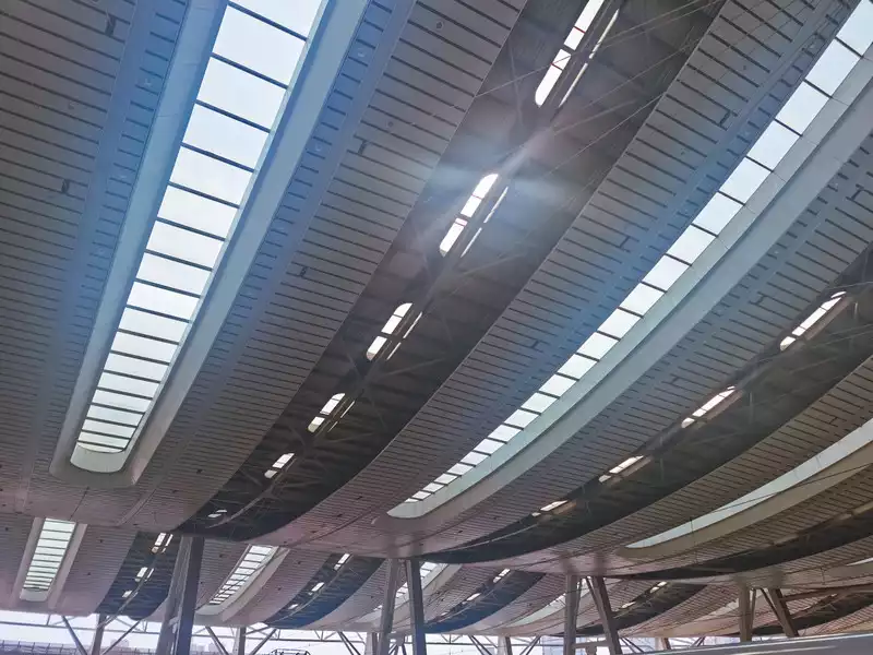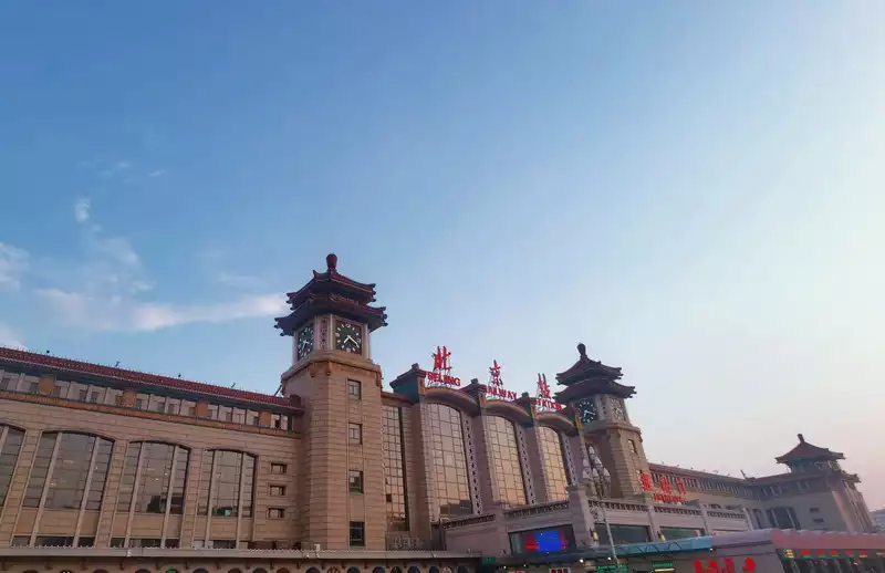 After a satisfying meal, we returned to the East Gate of the Temple of Heaven and took the subway to Beijing Railway Station. Beijing Railway Station was built in 1901 (the 27th year of the reign of Emperor Guangxu of the Qing Dynasty) and completed in 1903 (the 29th year of the reign of Emperor Guangxu of the Qing Dynasty). It is a historic railway station. Its layout is symmetrical along a central axis, with the waiting hall in front and the platform behind. The facade is flanked by two wings that frame the center. The specific design and decoration draw inspiration from traditional Chinese architecture, while incorporating new structural forms. The waiting halls on both wings feature flat roofs, while the central section, flanked by two bell towers, frames a central hall with a flat shell roof. Beijing Station's architectural aesthetic reflects national cultural traditions, with prominent emphasis on the façade's decorative elements. Glazed tile roofs and glass ornamentation are featured on the bell tower, wings, and triple-arched windows. The polished aluminum ventilation grilles and column capitals on the hall's marble walls are inspired by ancient Chinese bronze patterns, creating a simple and elegant aesthetic. The main color palette of the hall harmonizes with the exterior's warm hues, while the flat shell ceiling is painted a light lake blue. Partially decorated with gold thread and colorful paintings, the lighting design features classical chandeliers and wall lamps, creating a light and bright atmosphere with a strong national character.