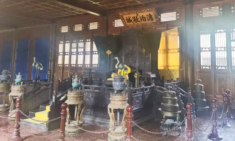 I also heard an anecdote about the throne in the Huangji Hall: When the Chongzheng Hall of the Forbidden City in Shenyang needed a throne to hold the throne, the Forbidden City in Beijing transferred the throne from the original Huangji Hall to Shenyang. However, the regulations of the two Forbidden City were different, so the throne could not enter the Chongzheng Hall smoothly. In desperation, the outermost screen on the two wings of the throne was removed to find a place. Therefore, although the throne in the Huangji Hall of the Forbidden City in Beijing is an imitation, it is a complete fake that is exactly the same as the original.