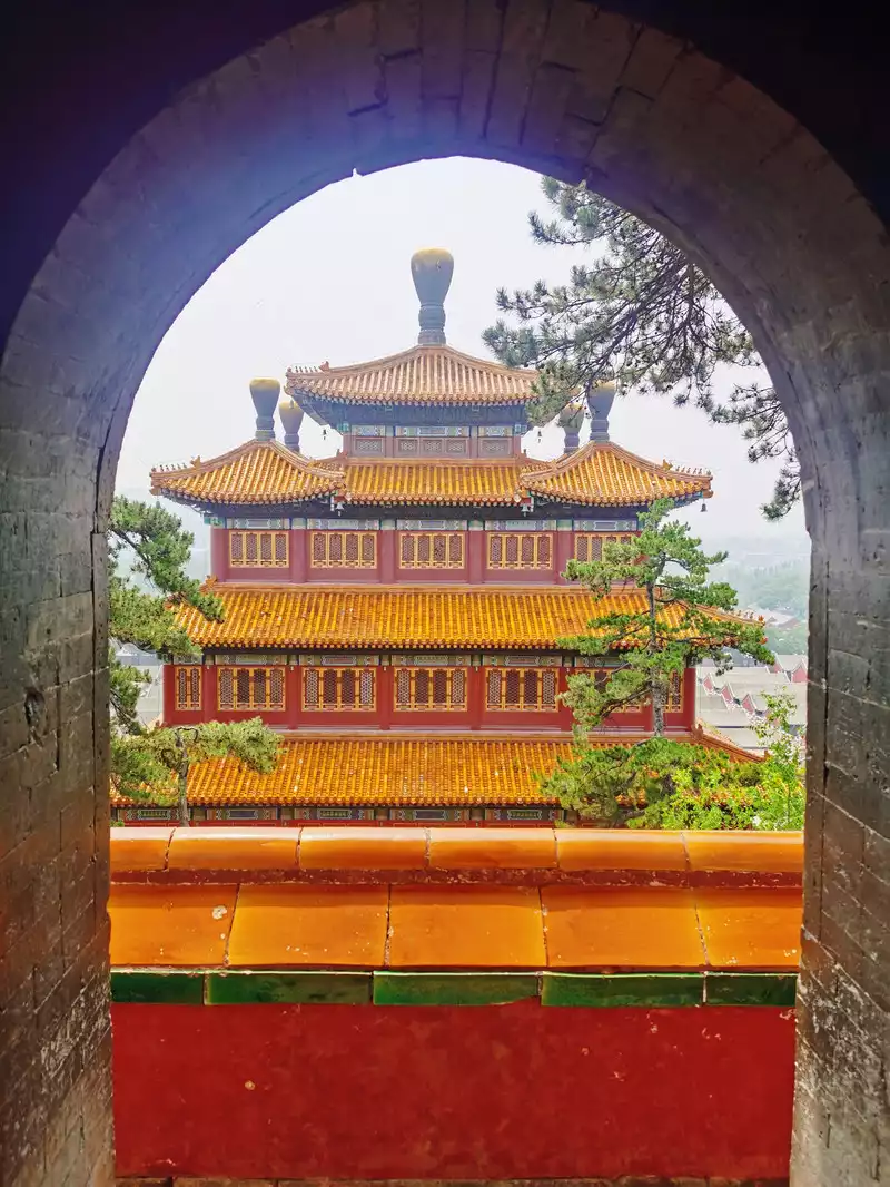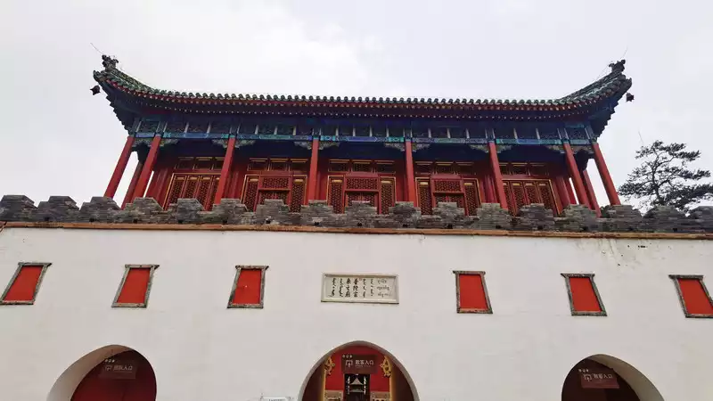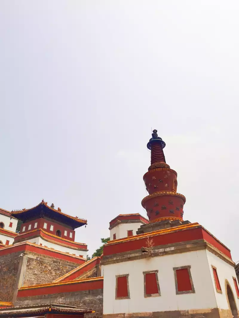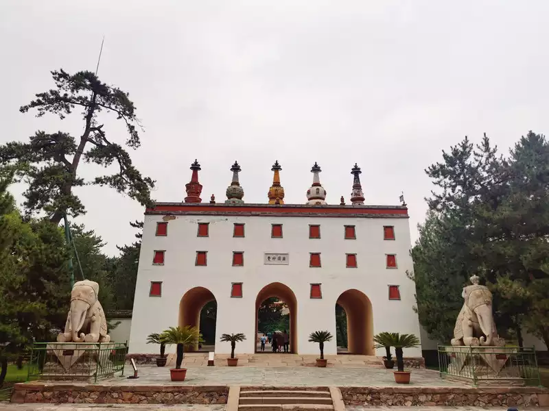 At noon, we moved to another of the Eight Outer Temples, the Putuo Zongcheng Temple. The Putuo Zongcheng Temple, a Buddhist temple commissioned by Emperor Qianlong of the Qing Dynasty to celebrate his 60th birthday and the 80th birthday of Empress Dowager Chongqing, covers an area of 220,000 square meters and is the largest of the Eight Outer Temples in Chengde. Completed in 1771, the 36th year of the Qianlong reign, the temple is modeled after the Potala Palace in Lhasa, Tibet, and is therefore commonly known as the "Little Potala Palace." "Putuo Zongcheng" (a loanword) and "Potala" (a transliteration) share the same origin, meaning "Sacred Land of Guanyin." A representative architectural masterpiece from the heyday of the Qing Dynasty, the Putuo Zongcheng Temple served as a venue for major religious ceremonies and political activities for the Qing government. It exemplifies the successful fusion and reinvention of Han and Tibetan architecture, and is a cultural relic of the Qing dynasty's heyday, possessing national, historical, artistic, scientific, and social significance. The Putuo Zongcheng Temple witnessed significant events, including the return of the Torghut tribe. It embodies the strong centripetal force and cohesion of the Chinese nation during the Kangxi and Qianlong reigns of prosperity, as well as the shared aspiration of all ethnic groups across China to create a prosperous and peaceful China. The following are the main buildings of the Putuo Zongcheng Temple: The mountain gate, facing south, combines Qing and Tibetan styles. Atop a white platform with three Tibetan arches, a Qing-style tower towers. The platform is a brick and stone structure with three arches in the front, each with a blind window. The platform is surrounded by pheasant-shaped panels, and in the center stands a Qing-style tower tower. It is five bays wide and two bays deep, with a single-eaved hip roof, yellow glazed tiles with green trim, front and back corridors with sill windows, and solid walls on both sides. The tower enshrines guardian deities, and a pair of stone lions stand in front of the mountain gate.