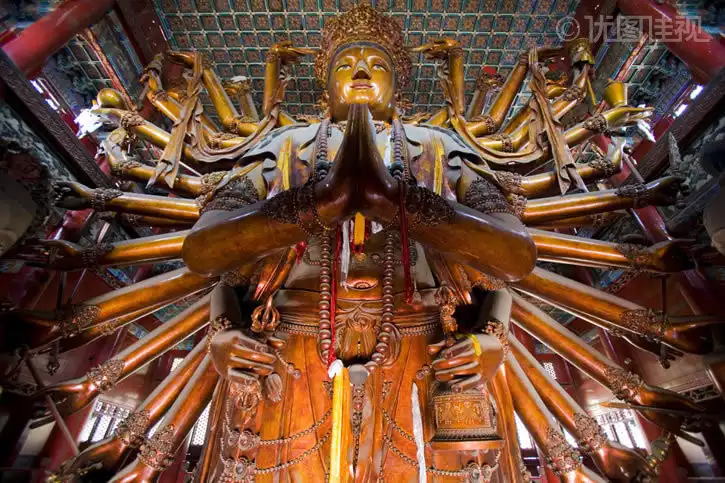 Introduction: Puning Temple, one of the Eight Outer Temples of the Mountain Resort, blends Han and Tibetan architecture, and integrates imperial and Buddhist traditions. The Mahayana Pavilion houses the world's largest gilded wooden sculpture of the Thousand-Armed and Thousand-Eyed Guanyin Bodhisattva.