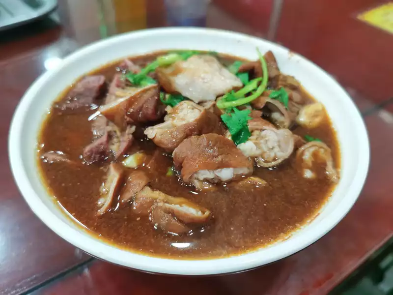 Luzhu is another famous traditional Beijing snack. It combines roasted and stewed pig intestines and lungs, creating a single bowl that combines the main course, side dishes, and hot soup. Luzhu originated on Nanheng Street in southern Beijing. Legend has it that during the Guangxu era, pork belly, a traditional Suzhou-style dish, was too expensive, so pork head and offal were substituted. This tradition, spread by local culinary experts, eventually led to the creation of Luzhu Huoshao (roasted buns with pork belly). Luzhu Huoshao is a popular dish among Beijingers. Cut the Huoshao into a crisscross pattern, cut the tofu into triangles, and chop the small intestine and lung into small pieces. Ladle a ladle of broth from the pot into the bowl, adding minced garlic, chili oil, fermented tofu, and chives. When the bowl arrives piping hot, the Huoshao, tofu, and lungs are fully absorbed by the broth, cooked through without being sticky, and the meat tender without being mushy. The most flavorful part is the small intestine. It's soft and crispy, with a rich, yet not greasy, flavor without any off-flavor. The occasional slice of white meat is even more delicious.