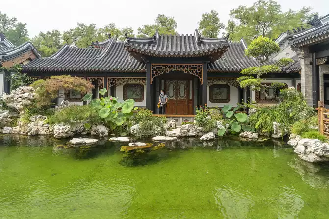 On the mountain range stands a round pavilion. This reminds me of the six-pillar "Jinyue" pavilion in He Garden in Yangzhou, located in the same location and style. At the Spring Breeze Pavilion on Chunfeng Ridge, the spring breeze blows through the clear, sunny spring sky. Tomorrow, I'll listen to the spring rain in the pavilion, and drink with friends to indulge in springtime romance. The small courtyard of the Nanchizi Art Museum isn't as opulent as the gardens of a princely mansion, but it's exquisitely designed and elegant. Beijing boasts numerous princely mansions, including the vast gardens of Prince Gong's Mansion and Prince Chun's Mansion, where Soong Ching Ling once lived. Even the Grand View Garden, described by Cao Xueqin in "Dream of the Red Chamber," is quite large. I suspect the former owner of the Nanchizi Art Museum garden was a former divisional and brigade commander under Fu Zuoyi, a relatively minor official. The garden appears to have been rebuilt, and the main courtyard to the west is likely still inhabited. The buildings within the garden are neatly arranged, reflecting the architectural style and specifications of traditional Beijing residences, distinct from the Jiangnan gardens of Su and Yang. Not far from here, behind the National Art Museum of China, there used to be a Half-Acre Garden. This was the residence of Jia Hanfu, the former governor of Shaanxi during the Kangxi era, and the work of the garden master Li Yu. Though called Half-Acre Garden, it actually encompassed over ten acres. Demolished in the 1980s, it is now reproduced at the National Museum of Chinese Gardens and Gardens, a masterpiece of northern gardens. The Nanchizi Art Museum here doesn't specify how many acres it encompasses, but it's probably only half an acre. Despite its small size, it boasts pavilions, terraces, ponds, rocks, pines, locust trees, lotuses, and plum trees, creating a vibrant and picturesque scene. While its layout may seem dense, it's not cluttered. In short, the Nanchizi Art Museum epitomizes the northern garden and is well worth a visit. The quiet summer sun sets in the courtyard, its green shade blanketing the ground with lost spring flowers. Dreams of spring drift to the horizon.