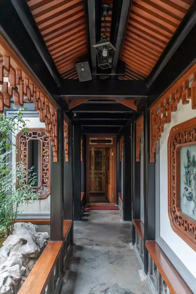 In the corridor, facing inward, are partitioned windows, inviting you to enjoy the view.