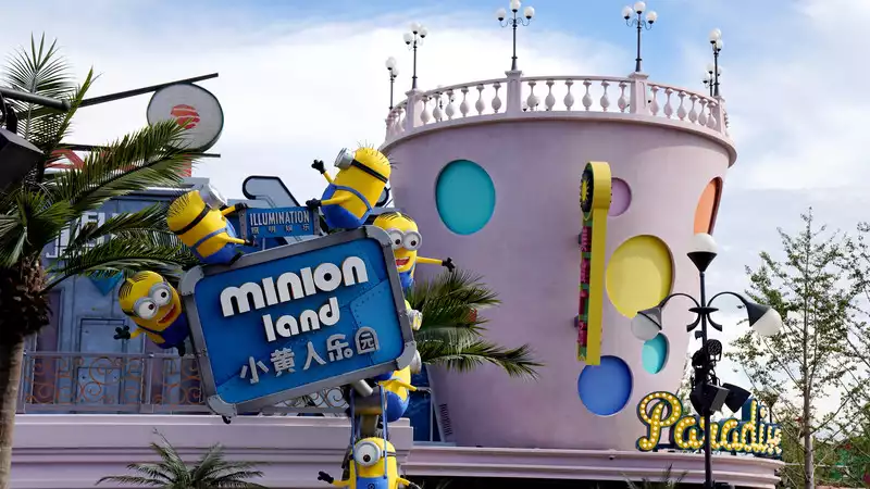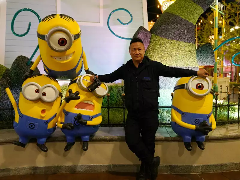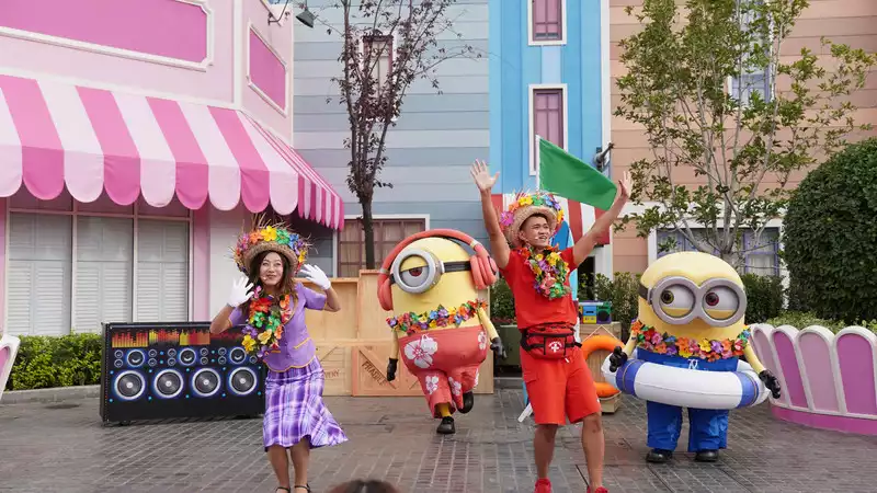 Next, head straight to Minion Land, a colorful world of fun that's irresistible to both adults and children! These playful Minions are roaming the streets, free and unfettered, enjoying themselves everywhere! Minion Land is inspired by the animated film "Despicable Me," recreating many characters and iconic scenes from the film. Guests can also sing and dance with many of the stars from "Sing." At Super Cute Island, the adorable roller coaster and super cute whirlpool await. The main attraction is Minions Mayhem. In Gru's super-villain lab, visitors shrink down and transform into Minions, embarking on a fantastical adventure with all the Minions, Gru, and his three daughters. It's a delightful experience. In Minion Land, you become innocent and carefree, too! It's an immersive 4D virtual reality experience similar to Harry Potter and the Forbidden Journey. The Minions are incredibly adorable, making this park a great place for parents to bring their children.