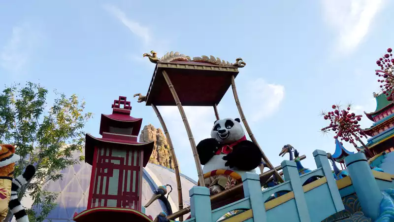 The Kung Fu Panda Land of Awesomeness theme park is inspired by the animated film series "Kung Fu Panda." Guests will join Po on his journey to become a martial arts master. Visiting Kung Fu Panda feels like returning to a happy hometown! Located in the hallway, this fully indoor setting offers plenty of air conditioning and a place to eat, making it a perfect energy refueling station! Enjoy the rich aroma of Mr. Ping's Noodle Shop or experience the magic of Kung Fu on a journey with the Dragon Warrior.