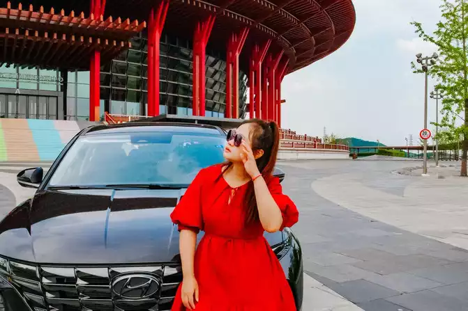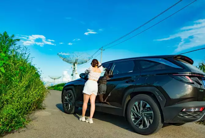 The fifth-generation Tucson L really blends in perfectly with this sci-fi scene. Illuminated by the setting sun, the eagle-wing LED daytime running lights, the three-dimensional, gleaming front grille, and the sleek, muscular body exude a sense of both technology and artistry, making it impossible not to capture its most beautiful profile. My favorite thing about this car's appearance is its distinctive muscular lines. Even without a boyfriend, I feel the boyfriend power at its peak. It could definitely be my most handsome rider, protecting me on the road.