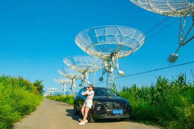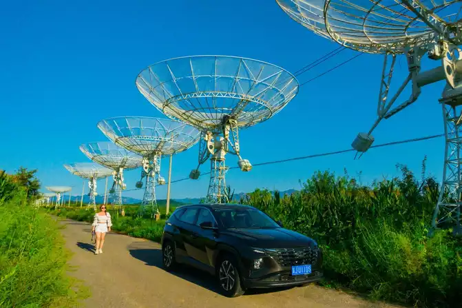 Along the wild roads of Bulaotun Village stands the Synaptic Aperture Radio Telescope Array, comprised of 28 parabolic antennas with a diameter of 9 meters. The station's crown jewel is the 50-meter radio telescope. In addition, a 30-meter FAST experimental model has been built. Looking at the large and small "pot lids" along the road, you can instantly step into a sci-fi blockbuster. Best of all, there's no entrance fee; as long as you park in an orderly manner, you can pose for as many poses as you want. If you want to be a sweet European and American hottie, the "monster" here as a backdrop is simply too good to be true.
