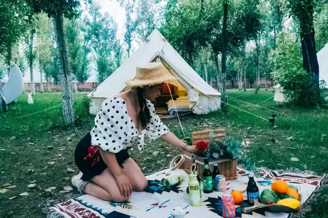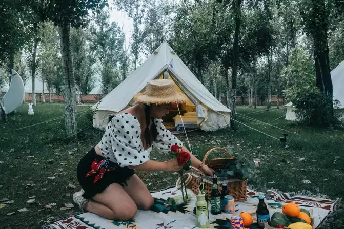 Moving camping equipment list: tent, canopy, outdoor tables and chairs, moisture-proof mats, sleeping bags, pillows, lamps, barbecue or outdoor cassette stove, various snacks, ingredients, picnic mats, Some good-looking props (convenient for posing), mosquito repellent, etc.