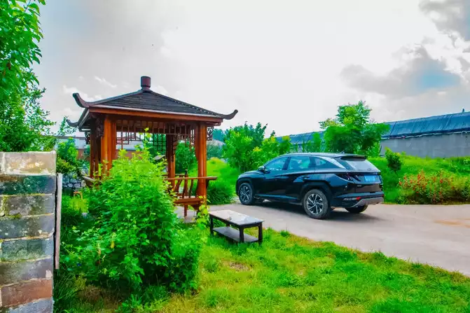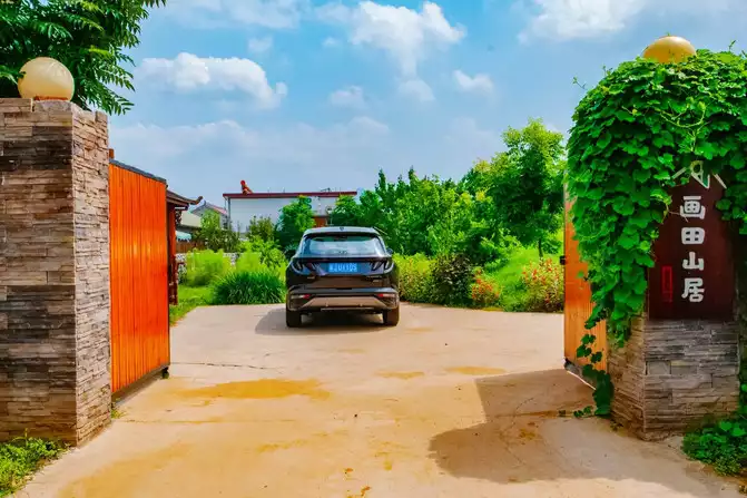 The B&B also has a well-behaved, internet-famous dog named "Naonao" who loves to eat Gong pears. He's very friendly and well-behaved. If you're staying here, he'll definitely follow you around. Although it was just a short trip, but as a kid with camping plans, I still prepared a lot of props for myself. The fifth-generation Tucson L I drove this time has a generous 583L trunk. If needed, the rear seats fold flat, transforming it into a spacious 1904L. I feel like I could even fit an air mattress on a sleepover trip. I packed a minimalist camping kit, including a tent, a canopy, outdoor tables and chairs, a picnic mat, and some beautiful props for taking beautiful photos. For overnight stays, you'll also need to bring a moisture-proof mat, sleeping bag, pillow, and lantern. Bring a barbecue or outdoor gas stove, as well as snacks and food. Most importantly, mosquito repellent and coils are essential; the mosquitoes are truly infested. Even though it's packed with gear, the spacious trunk is still plenty room for those quick roadside stops. I can sit comfortably in the trunk and capture the moments I want to capture. After a delightful day at Bulao Mountain Residence and a simple farmhouse meal prepared by the owner, I was ready to head to my next stop, camping. Although I'm a woman, owning a fifth-generation Tucson L means I can easily enjoy my own road trip, safely and comfortably. The dirt road to Bulao Mountain Residence was also bumpy and muddy. Due to the rising water level of Miyun Reservoir in recent days, there are small gates opened to release water on the road section here. Equipped with Hyundai SmartStream's new generation powertrain, my car can achieve both fuel efficiency and power, and can handle various road conditions easily and naturally. The driving experience is superb.
