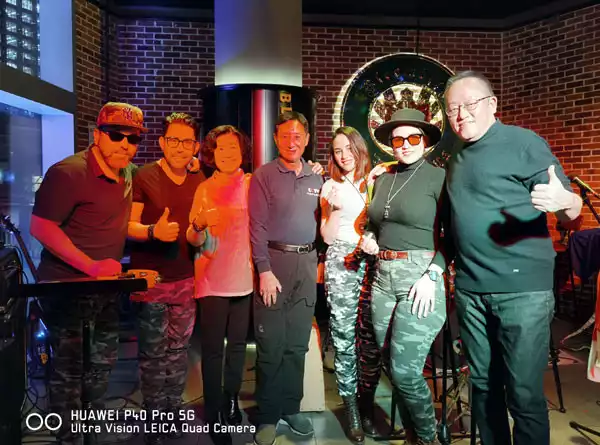 Rosalia is the band's lead singer, a truly stunning vocalist who also excels at playing the flute. The band also features Elizabeth, a beautiful guitarist, and Edel, an experienced bassist. These four youthful and energetic musicians form a charming and versatile band. Their musical styles include jazz, pop, Latin, rock, bossa nova, and more. They can perform a variety of live music for different age groups, catering to their diverse needs. Happy Guests (Photo by Feng Ganyong) At the Bloomberg Brasserie and Bar, reporters observed that the guests that evening were mostly young people, including some foreigners. A group of guests at a neighboring table, celebrating a birthday, were staff from the Thai Embassy in China. Their enthusiastic and joyful atmosphere filled the entire brasserie with joy. They enthusiastically offered slices of cake to other guests, allowing everyone to share in their happiness.