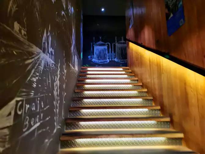 Climbing the stairs from the first floor to the second, the corridor is flanked by murals depicting wine culture. These simple, bright paintings capture the theme of Bloomberg Brewery. Photos of guests also adorn the walls. After taking their seats in the second-floor beer house, Zhang Bin slowly explained the Bloomberg Brewery's history.