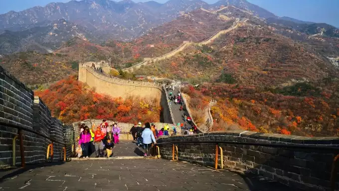 Autumn, with its clear skies and refreshing breezes, is the perfect time to visit the Great Wall. At Badaling, autumn is a vibrant season, with layers of forests and mountains ablaze in crimson. The crimson leaves shading the battlements and watchtowers blaze like a raging fire. Badaling Great Wall src="/travelogue/China/Beijing/4051269/6.webp">Badaling Great Wall
