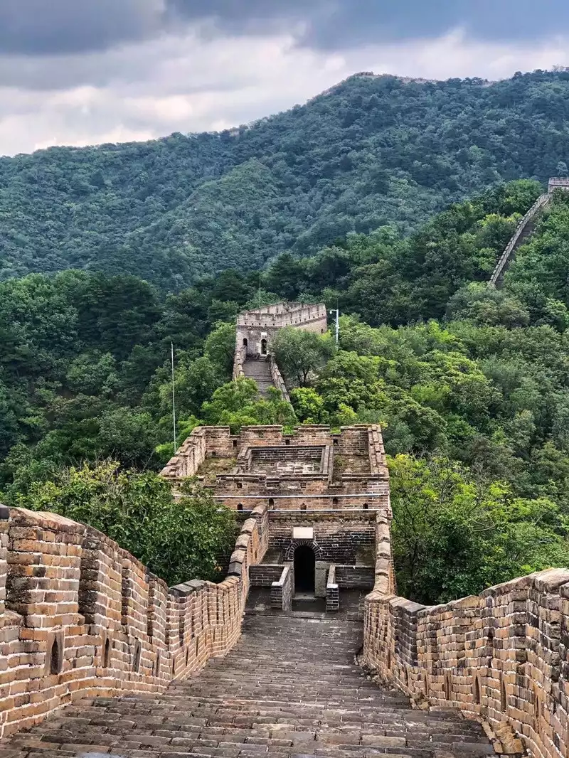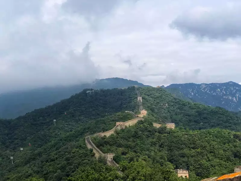 Mutianyu Great Wall Scenic Area. The open section of the Mutianyu Great Wall stretches 5,400 meters, with a vegetation coverage rate exceeding 98%. With a long history and splendid culture, it enjoys the reputation both in China and abroad as "Mutianyu is the most beautiful section of the Great Wall." Because Mutianyu was developed relatively recently, many foreign leaders visiting China chose to visit Mutianyu, resulting in a high number of foreign tourists. While the Badaling Great Wall boasts grandeur, the Mutianyu section is undoubtedly scenic. Located 70 kilometers from Beijing, Mutianyu lies in the western Yanshan Mountains, at the foot of the Jundu Mountain valley, and boasts a high forest coverage rate.