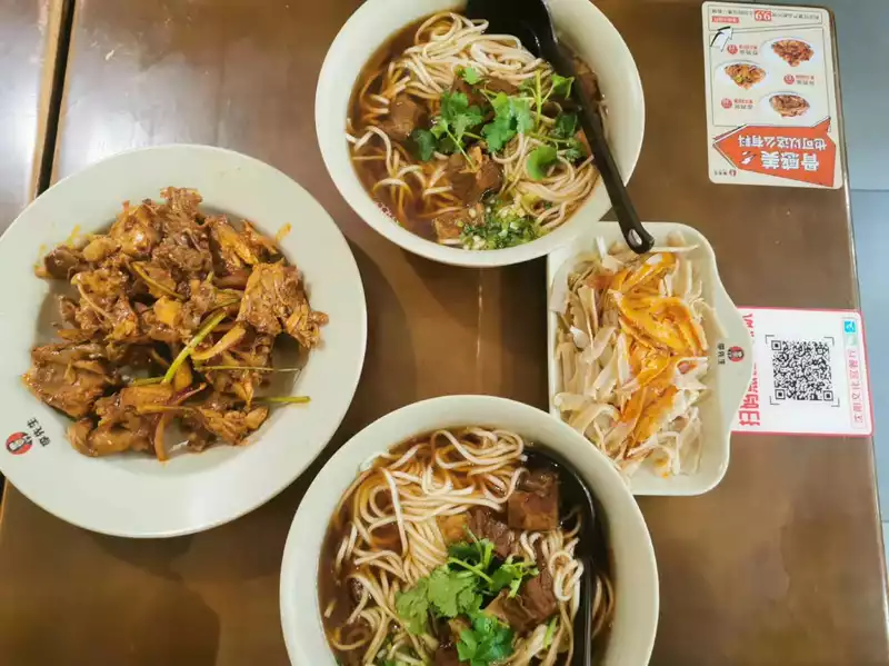 Finally, we could get off the bus and have some fun. My son said he was hungry as soon as he got off. That's right! We left so quickly this morning that the kids barely had time to eat, and it's almost noon now, perfect for lunch. Not to mention that Badaling Food Street is the gateway to the scenic area, and there's so much delicious food, both Chinese and Western. My son loves beef noodles, and the owner, upon hearing we were customers of Basda, was so kind as to give us a discount. That was awesome! After a hearty meal, we both began our climb up the Great Wall.