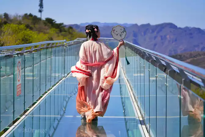 The ancient wall, shaped like a human, traverses Feizhi Mountain. Built during the Northern Qi Dynasty, it winds for several kilometers, like an octogenarian quietly recounting a millennium of vicissitudes. The 360-degree panoramic glass viewing platform, the "Eye in the Sky," reflects the eternal sun and moon, offering panoramic views of the surrounding mountains and rivers. Walk on the transparent trestle, sit quietly, or stroll with a fan. With the added bonus of Hanfu, any photo opportunity is stunning. During this time, there was also a little girl around five or six years old who ran over to take a photo with us. Her voice was so cute! Walk down the mountain and into the Jizhou Grand Canyon. This winding canyon, with its rock formations, is a true wonder of the world. Millions of years of geological evolution are clearly visible here. You can observe up close, even touch, this natural wonder, hailed as "the history of the earth and a treasure of the world."
