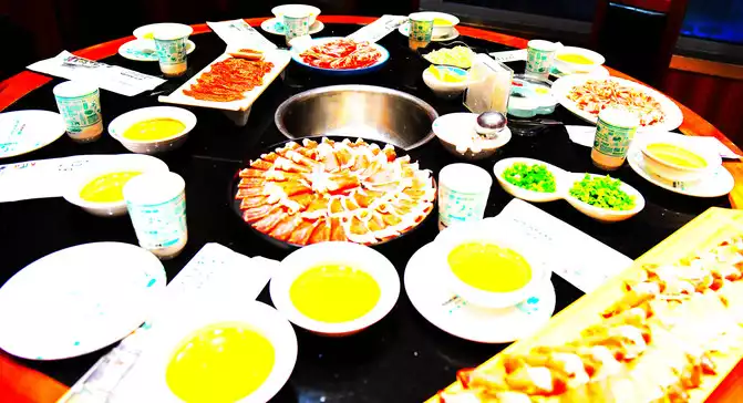 Shahe Town in Changping District is actually full of mutton restaurants, each with its own unique secrets, whether it’s authentic mutton, unique dipping sauce, or even both. Among the numerous hot pot restaurants, there is one that is recognized by foodies as the best: Yangfang Shengli. Yangfang Shengli has three branches in town. That evening, we went to the Shahe branch, just 100 meters east of the town government. They have two unique features: they simmer the mutton in clear water—the owner says they only use clear water for good mutton. And they serve the mutton rolls on a long bench—or rather, a long board. How long? Over a meter, almost as long as a person, a stark contrast to the round plates used by other restaurants. The water is Nongfu Spring Spring from Changbai Mountain, the sheep are milk-fed sheep shipped from Inner Mongolia, and the sauce is "Cixi sesame paste." These three ingredients complement each other perfectly, making it absolutely amazing. Michelin can't even beat them!