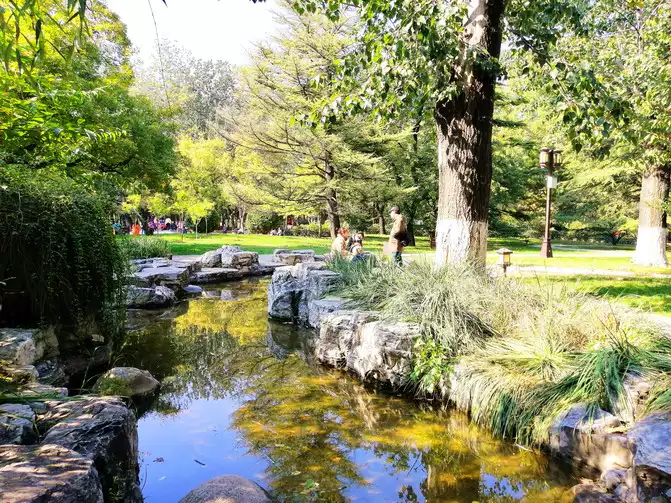 In this park, adults can stroll and chat on the path beside the lotus pond, while elderly people sit quietly on chairs and art enthusiasts sketch with their sketchpads. There's no sense of urgency here, only a sense of leisure. Meanwhile, children can enjoy the children's playground, complete with bumper cars and arcade games. The park is quite large, with attractions such as Shuo Garden, Baochun Island, Lotus Pond, Shenglan Pavilion, and Yi Garden. A rockery stands on the shore, engraved with two large red characters, "Ru Jing," referring to the lake's smooth surface.