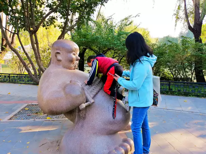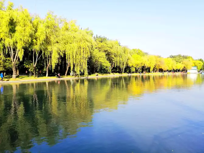 There really is a lake in Qingnian Lake, they didn't lie to me. Is this park only for young people? Of course not. You see, most of the people strolling around aren't young people. So why is it named Youth Lake Park? In the 1950s, this area was just a large puddle. In 1958, over 700 students from Beijing No. 1 Middle School, No. 5 Middle School, and No. 21 Middle School responded to the call and volunteered to dig a lake. The lake was completed and named Youth Lake. Those young people who toiled to dig the lake are now gray-haired and elderly. Outside Andingmen on the North Second Ring Road, with a long bridge and rippling clear waters, Qingnian Lake Park stands like an emerald jewel amidst the community. Known as the "Little West Lake," this impressive park in the city center offers no admission fee, a truly thoughtful gesture. The vast lake is truly soothing, and a complete circuit takes about 40 minutes. It's truly rare to find such a large lake in the city.