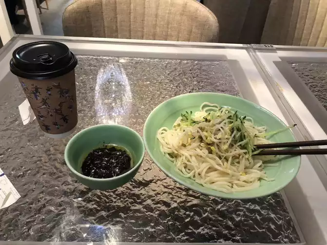 Coffee and noodles with soybean paste at the Ice Cellar Restaurant