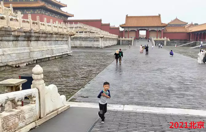 Beijing in October should have been sunny and refreshing in autumn, but the National Day holiday in 2021 was rainy in Beijing, and the five-day tour of the capital began with the drizzle of autumn rain. It was already noon when we arrived in Beijing by high-speed rail. We booked accommodation at the Tangla Hotel, across from the National Museum of China on West Chang'an Avenue. After settling in, we headed straight to Tiananmen Square with the kids. We wandered from Tiananmen Square, through Tiananmen Square, to Qianmen, and then to Dashilan, stopping here and there along the way. It was a brief glimpse into the charm of old Beijing.