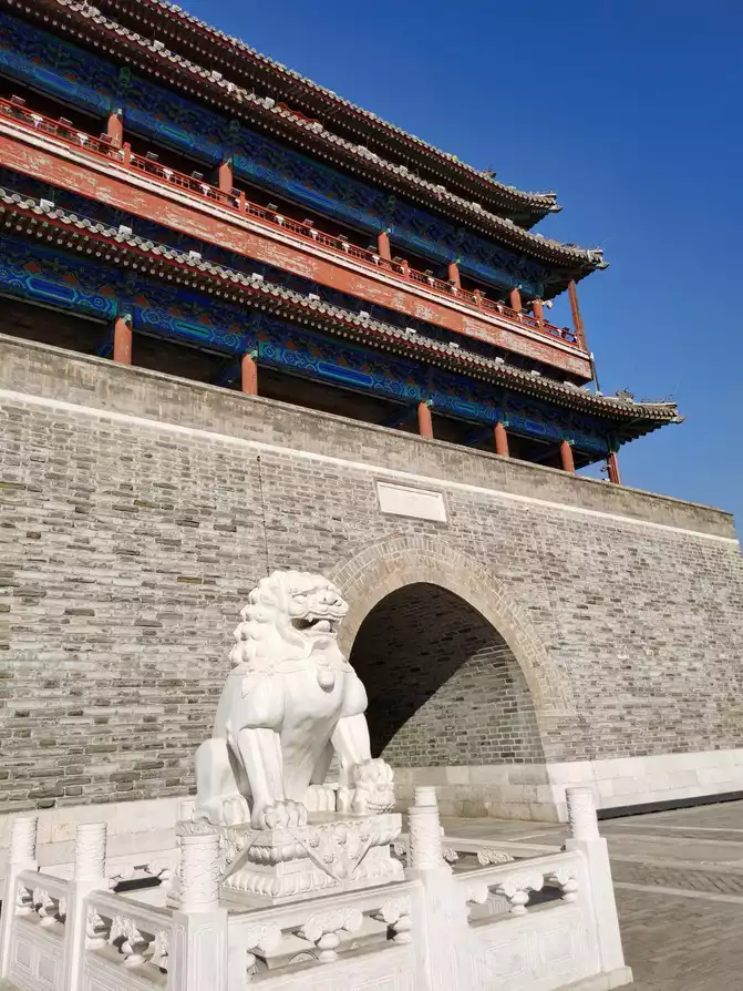 Yongdingmen is the south gate of Beijing's Outer City, facing north from Zhengyangmen, the inner city's south gate, making it the southernmost point of Beijing's central axis. However, the original city tower and the arrow tower in front of it were demolished in 1957. The current one was rebuilt to its original appearance in 2004. The stone plaque on the gate archway that was demolished is now preserved in the Capital Museum and is worth seeing.