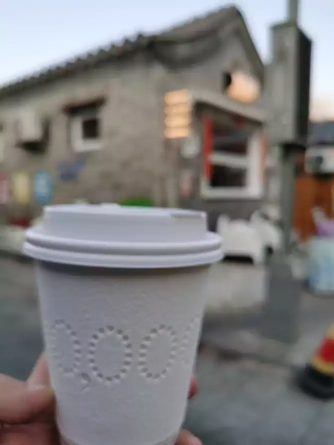 Arriving at the Xiannongtan Temple, now the Beijing Museum of Ancient Architecture, I learned it's also closed for renovations due to the Central Axis's World Heritage status application. I heard it'll reopen in June, so I'll come back then. Looking at the map, I'd pass Fayuan Temple on the way back to my place. It's so famous, how could I miss it? Cycling along Nanheng East and West Streets, I saw a sign on the roadside that said "Fayuan Temple Block," clearly a cultural and creative area. There was outdoor seating on the street, a cafe with a quirky name: "Shiqian*Shiqian*Shiqian." It was quite crowded, so I went in and warmed my hands with a cup of coffee.
