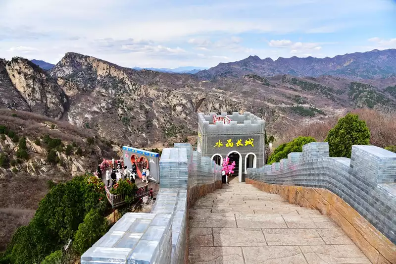 China's first Great Wall constructed of crystal bricks, shimmering in the sunlight. Let your children run in front of the beacon tower, or walk hand-in-hand along the wall with the vibrant green mountains as your backdrop, creating a dreamy effect in your photos.
