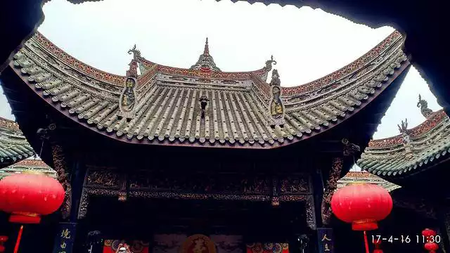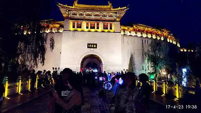After entering the Lijing Gate, there is a city wall. On the tower on one side of the city wall is the Tianhou Palace, with the inscription "Auspicious Clouds and Bright Moon" on the city gate.