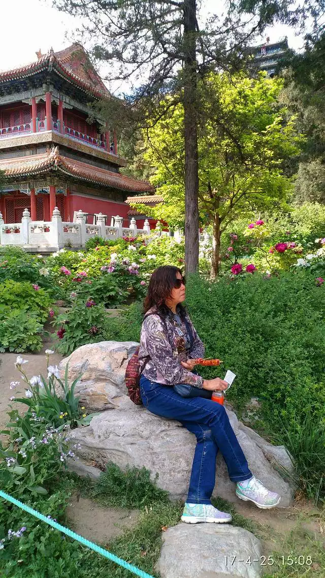 The peonies here are still in full bloom. The flower viewing period I missed in Luoyang was made up for in the palace.