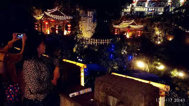 As night fell, they couldn't help but dance to the music of the swan fountain. They recorded her graceful dance moves with their phone, saving them forever on their phone and computer.