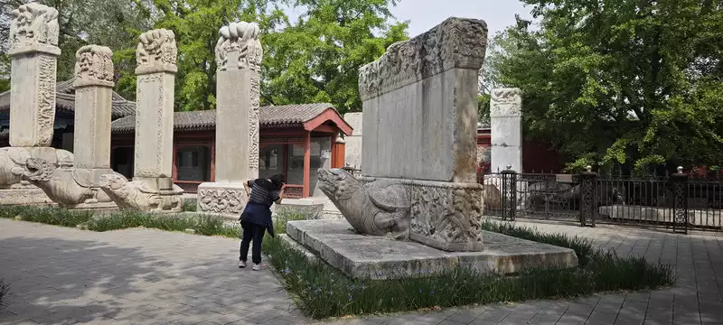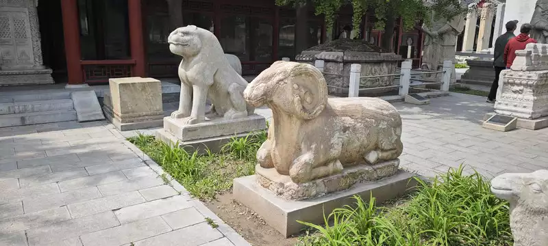 "Hello, what is this sculpture? "The old lady next to me asked me, "I don't know. Let me take a look. There are introductions here." "This is a stone sheep, and this is a Huabiao..." "This one has the longest history and is from the Yuan Dynasty. This one is from the Ming Dynasty, and this one is also from the Ming Dynasty..." Each stone carving here will have a brief introduction. The old lady couldn't see the words on the introduction clearly, so I told her roughly. These stone sheep and stone tigers have long been worn away by time, leaving only a smooth head and a smile on their lips, which is a little funny. We passed by the stone carvings. In its long existence, we were a speck of dust or an ant that it didn't care about. We were like any other existing or non-existent things that passed by it. It remained motionless. Through the arbitrary passage of time, it existed according to its own laws.