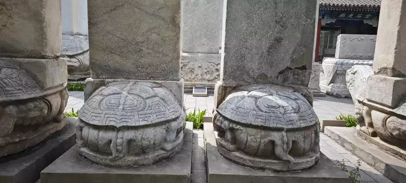 A hundred years ago, the monk Tianzhu came here to preach. Yongle built a temple in his honor. Later, Qianlong favored the temple and allocated funds for its reconstruction to celebrate his mother's birthday. The temple burned down during the turbulent years, leaving only the pagoda. The temple buildings are gone, but the foundations remain. A protective platform has been built on the foundation of the original main hall in front of the pagoda, and the column bases have been restored in situ on top of it, visually showcasing the original hall's column grid. Within this layout sits the stone Sumeru pedestal from the original Buddhist shrine, and the entire hall's original appearance appears before our eyes, seemingly dislocated in time and space. Neither the burning of fire nor the passage of time can destroy the stone's frozen memory. Those enshrined Buddha statues once rested upon this Sumeru pedestal, but now only the ornately carved stone remains.