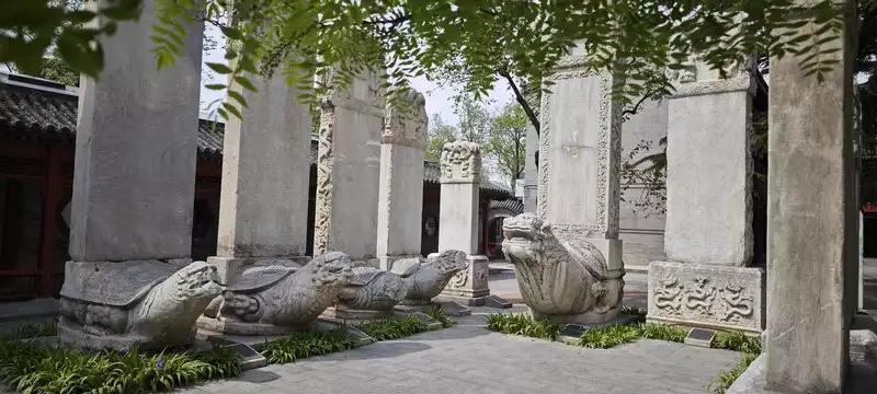The walls of the corridors surrounding the courtyard are inlaid with stone tablets that bear memories of this city, inscribed in traditional Chinese characters. Modern people cannot yet read classical Chinese texts in books, let alone these inscriptions that have been damaged by history. For tourists who are just passing through, when they come to the stone tablets, they insist on glancing at them for a while. If they find a few sentences they understand, they can't help but share them with their companions, repeating them over and over again. If they don't understand a single word, they will stand there for a while before walking away bored. Ancient inscriptions were often used to record events, a period of history, or a person's life. In the end, the person and the object are gone, but the stone tablet remains. The story of a lifetime is finally told in the words inscribed on the stone tablet. It was buried in the soil for unknown reasons on an unknown date, and then dug out and displayed to the world on an unknown date. People then anchor a time coordinate in the long river of time based on the content recorded on it.