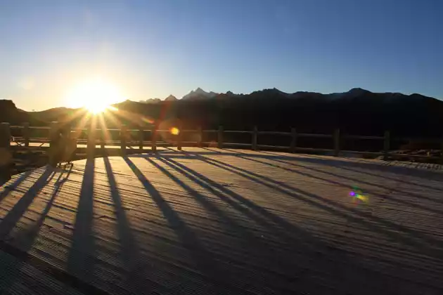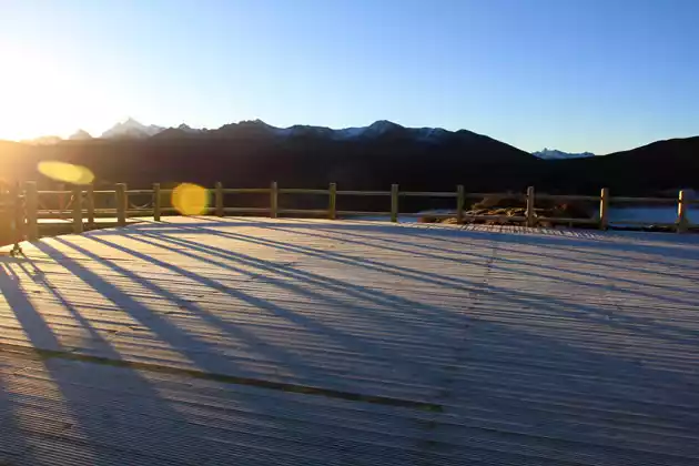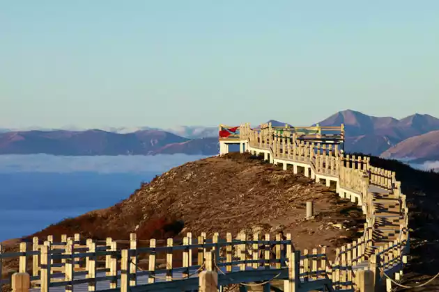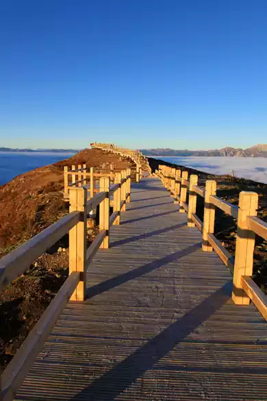 At this time, the sun had just emerged from the mountain, looking at the white frost on the wooden plank road, and moved step by step to the front of the observation deck src="/travelogue/China/Sichuan/1336416/289.webp"> src="/travelogue/China/Sichuan/1336416/289.webp"> src="/travelogue/China/Sichuan/1336416/289.webp">