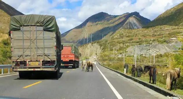 Sometimes the traffic jam is because of the leisurely horses, hehe src="/travelogue/China/Sichuan/1336416/289.webp"> src="/travelogue/China/Sichuan/1336416/289.webp"> src="/travelogue/China/Sichuan/1336416/289.webp">