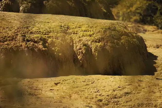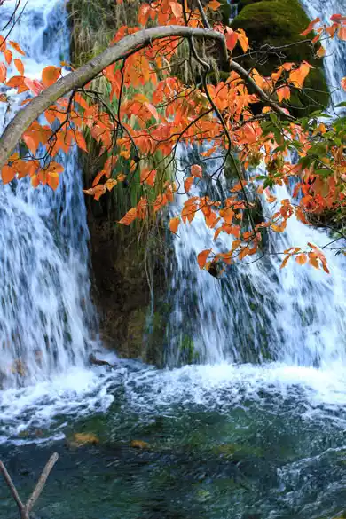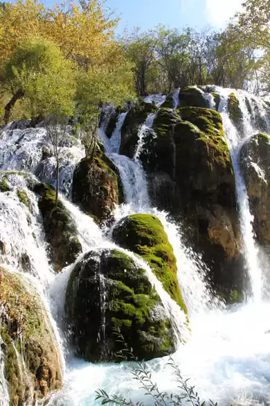 Waterfall is a multipolar round waterfall, which is unique because the waterfall surface is shaped like a lotus petal.The upstream lake water flows around along the shallows,