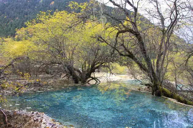 kilometers are quickly completed, and below is the last attraction of Jiuzhaigou: Bonsai Pond