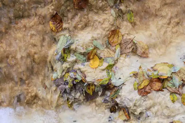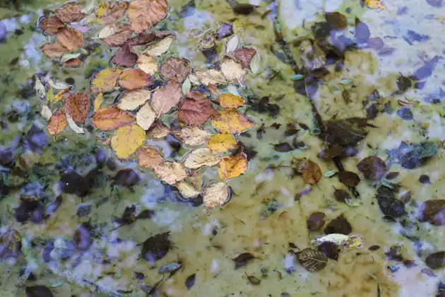 Turning around the mill, I saw a brightly colored leaf, which was indeed very beautiful