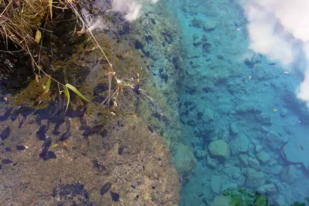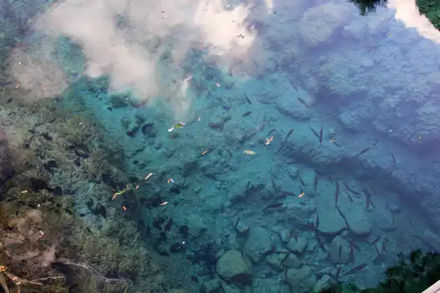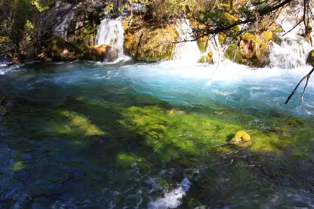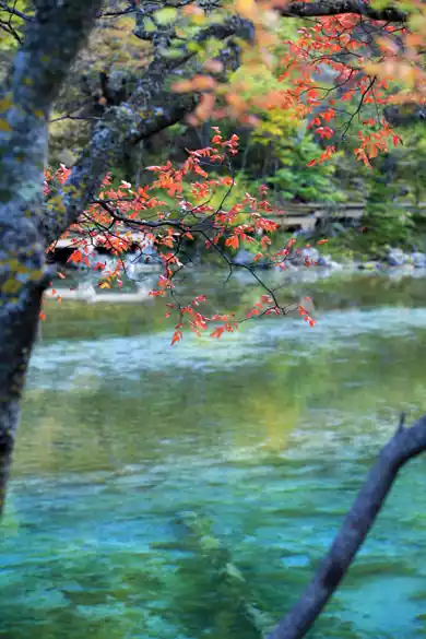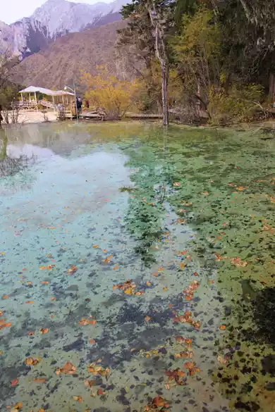 The pool water is pure and transparent, and the edges and corners of the gravel at the bottom of the pool, the texture of the rock surface, and the color difference of plants are clearly distinguishable. src="/travelogue/China/Sichuan/1336416/289.webp"> src="/travelogue/China/Sichuan/1336416/289.webp"> src="/travelogue/China/Sichuan/1336416/289.webp">