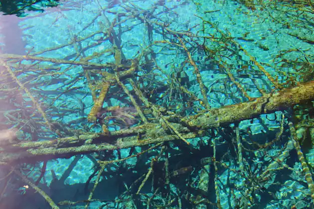 ,that is the emerald river, upstream, this enters a paradisiacal fairy tale world