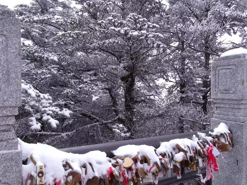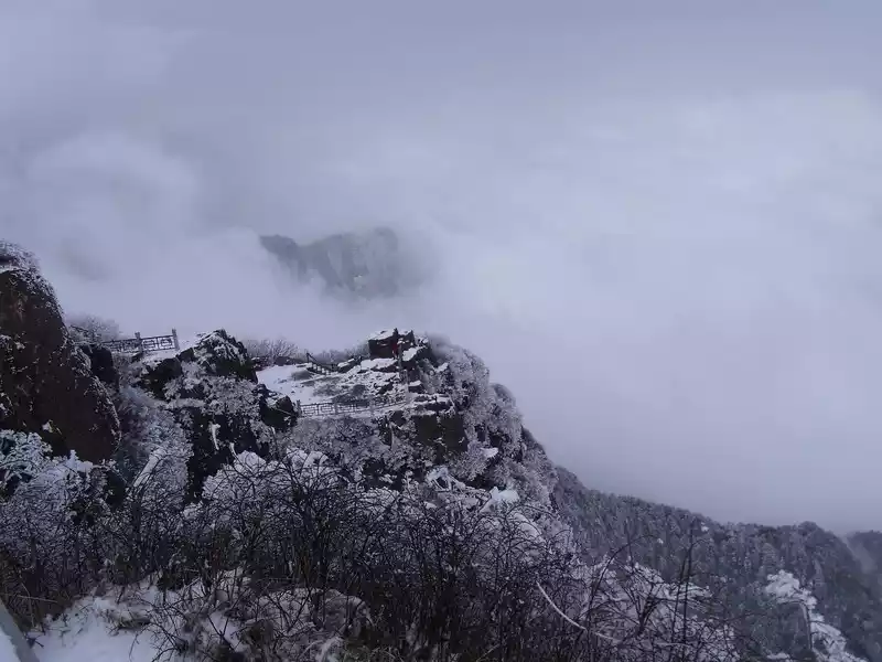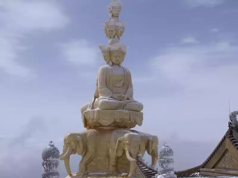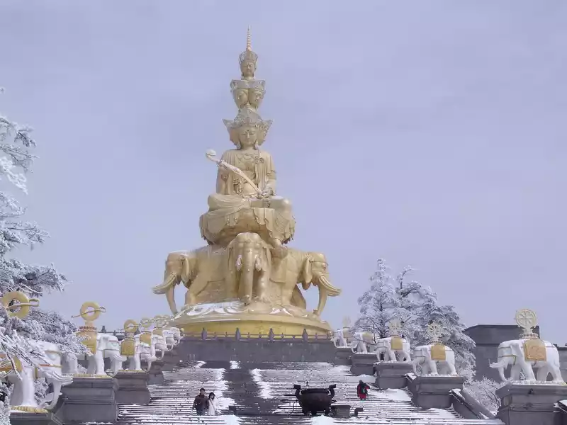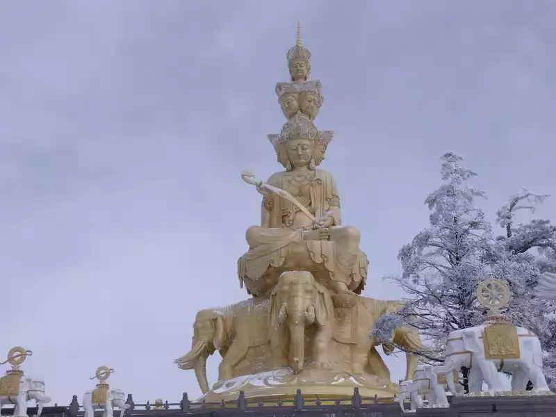 This is one of the four famous Buddhist mountains in our country, the dojo of Puxian Bodhisattva, and the temples on the mountain are all over the place. The scenic spots are mainly Buddhist temples and natural scenery, including the Golden Dome, the Ten Directions Puxian Statue, Qingyin Pavilion, Wannian Temple, Huazang Temple, Baoguo Temple, as well as the sea of clouds, sunrise, Buddha's light, sacred lamp, etc. We encountered heavy snow this time and mainly visited the Golden Peak.