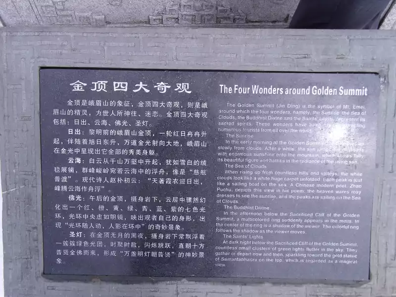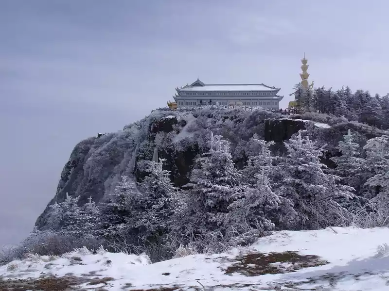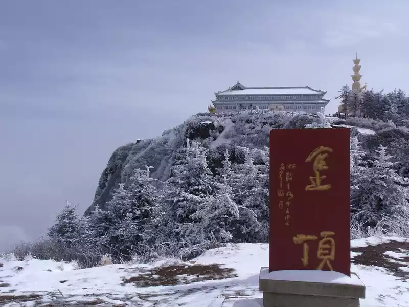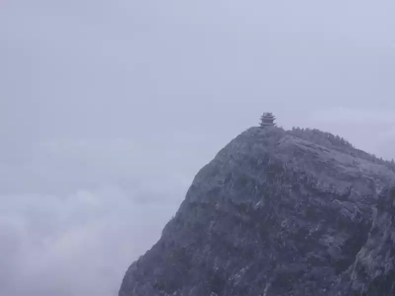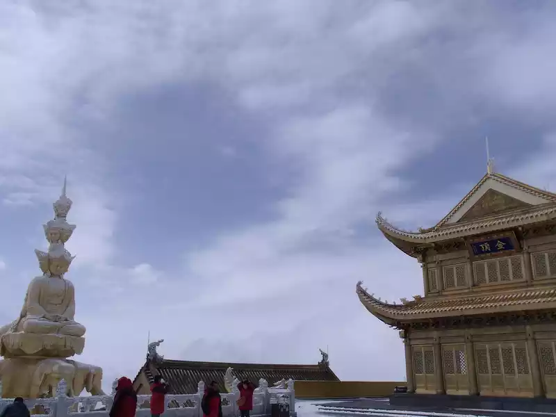 Golden Peak, located on the main peak of Mount Emei, at an altitude of 3077 meters, is the end of the Emei Mountain Tour. Above is Huazang Temple.