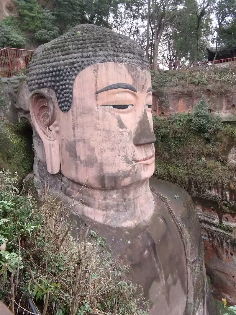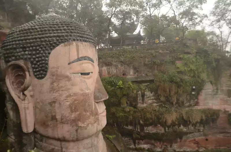 The Big Buddha Pass is 71 meters high and is the world's largest stone carved seated Buddha. The posture is well-proportioned, the expression is solemn, the head is at the level of the mountain, the feet are on the river, and the hands are on the knees. The head is 14.7 meters high, the head is 10 meters wide, and there are 1,051 buns. The ears are 7 meters long, the nose is 5.6 meters long, the eyebrows are 5.6 meters long, the mouth and eyes are 3.3 meters long, the neck is 3 meters high, the shoulders are 24 meters wide, the fingers are 8.3 meters long, from the knees to the instep of the foot is 28 meters, the instep is 8.5 meters wide, and the top of the foot can sit around more than 100 people.