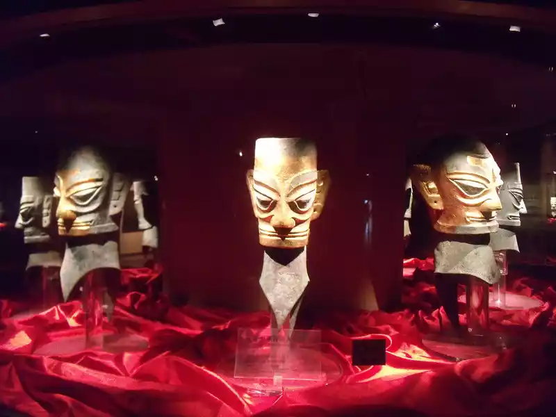 These cultural relics unearthed from the Sanxingdui site have high noses and deep eyes, prominent cheekbones, wide mouths and big ears, and look like foreigners, arousing the curiosity and inquiry of countless people. Many archaeologists believe that the Sanxingdui civilization is very similar to the Mayan civilization and the ancient Egyptian civilization. Many cultural relics such as naked figures and other sacrificial items, sun wheels and other astronomical utensils are similar to those found in Mayan ruins; Gold masks, bronze masks, etc., are similar to the cultural relics unearthed in Egypt and Central Asia.