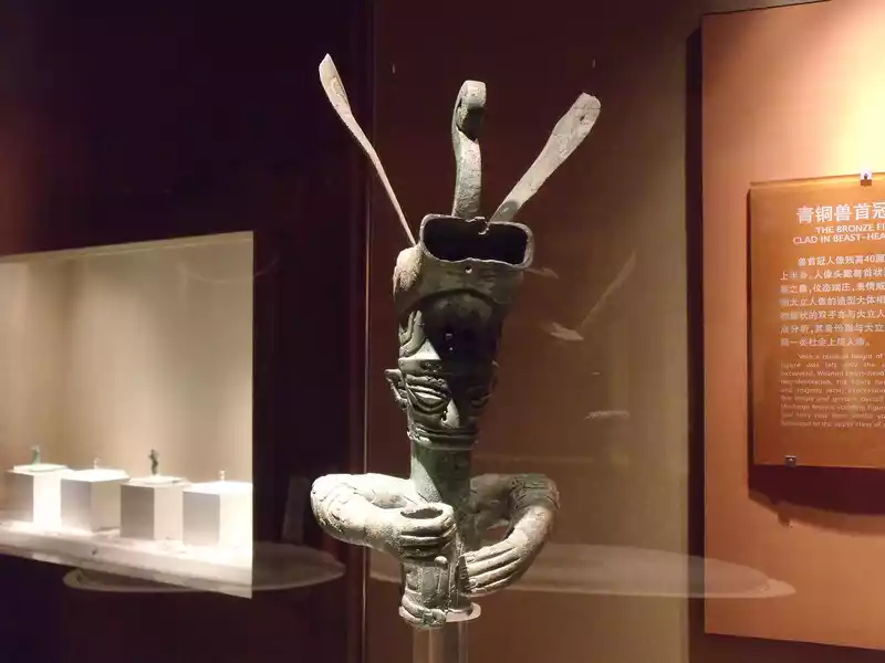 Bronze beast head crowned figure. The balance is 40 cm, and only the upper body remains when it was unearthed.